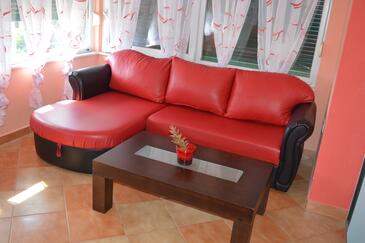 Ferienwohnung bietet Platz für 6 Gäste. Die Betten sind in Schlafzimmern, die es 2 gibt, und in Wohnzimmer, innerhalb einer Gesamtfläche von 54m2, angeordnet. Die Gäste haben einen eigenen Balkon zur Verfügung, auf der sie in warmen Sommernächten genießen können. Es ist erlaubt, Speisen auf dem Gemeinschafts-Grill vorzubereiten. Während ihres Aufenthalts können Gäste das gemeinsam zur Nutzung stehende Schwimmbad benutzen. In der Unterkunftseinheit besteht die Möglichkeit des Mitbringens von Haustieren gegen Aufpreis.