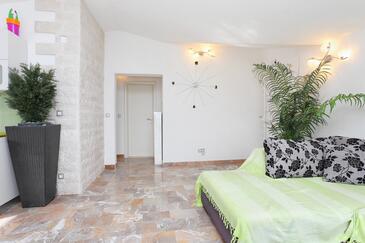 Ferienwohnung bietet Platz für 6 Gäste. Die Betten sind in Schlafzimmern, die es 2 gibt, und in Wohnzimmer, innerhalb einer Gesamtfläche von 67m2, angeordnet. Die Gäste haben eine eigene Terrasse zur Verfügung, auf der sie in warmen Sommernächten genießen können. Das Apartment bietet Meerblick. Für vollen Genuss und Entspannung gibt es einen privaten Grill für Gäste dieser Unterkunft.