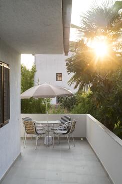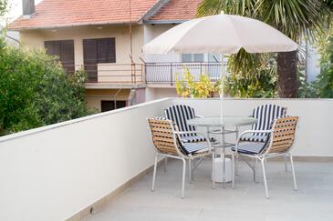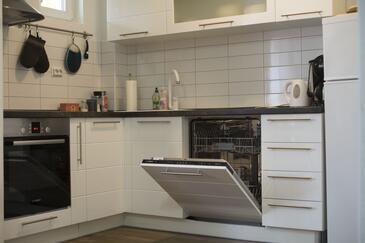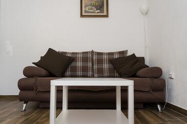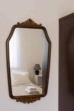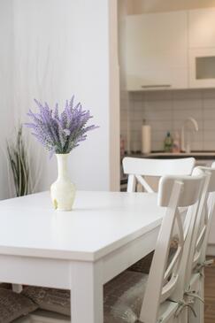 Ferienwohnung bietet Platz für 7 Gäste. Die Betten sind in Schlafzimmern, die es 2 gibt, und in Wohnzimmer, innerhalb einer Gesamtfläche von 60m2, angeordnet. Die Gäste haben eine eigene Terrasse zur Verfügung, auf der sie in warmen Sommernächten genießen können. Es ist erlaubt, Speisen auf dem Gemeinschafts-Grill vorzubereiten. In der Unterkunftseinheit besteht die Möglichkeit des Mitbringens von Haustieren, und die Dienstleistung ist im Preis der Unterkunft enthalten.