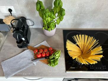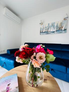 Ferienwohnung bietet Platz für 3 Gäste. Die Betten sind in Schlafzimmern, die es 1 gibt, und in Wohnzimmer, innerhalb einer Gesamtfläche von 52m2, angeordnet. Die Gäste haben einen eigenen Balkon zur Verfügung, auf der sie in warmen Sommernächten genießen können. Das Apartment bietet Meerblick. Es ist erlaubt, Speisen auf dem Gemeinschafts-Grill vorzubereiten.