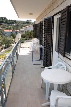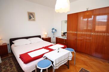 Ferienwohnung bietet Platz für 6 Gäste. Die Betten sind in Schlafzimmern, die es 2 gibt, innerhalb einer Gesamtfläche von 87m2, angeordnet. Die Gäste haben eine eigene Terrasse zur Verfügung, auf der sie in warmen Sommernächten genießen können. Das Apartment bietet Meerblick. Es ist erlaubt, Speisen auf dem Gemeinschafts-Grill vorzubereiten.
