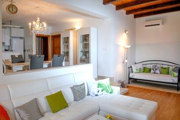 Haus bietet Platz für 6 Gäste. Die Betten sind in Schlafzimmern, die es 3 gibt, innerhalb einer Gesamtfläche von 104m2, angeordnet. Die Gäste haben eine eigene Terrasse zur Verfügung, auf der sie in warmen Sommernächten genießen können. Das Haus bietet Meerblick. Für vollen Genuss und Entspannung gibt es einen privaten Grill für Gäste dieser Unterkunft. Während ihres Aufenthalts können sich Gäste im privaten Schwimmbad entspannen. In der gebuchten Unterkunftseinheit zahlt man am Ort ein Depositum ( der Preis ist an der Internetseite angeführt ).