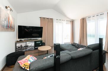 Haus bietet Platz für 10 Gäste. Die Betten sind in Schlafzimmern, die es 5 gibt, und in Wohnzimmer, innerhalb einer Gesamtfläche von 210m2, angeordnet. Die Gäste haben eine eigene Terrasse zur Verfügung, auf der sie in warmen Sommernächten genießen können. Das Haus bietet Meerblick. Für vollen Genuss und Entspannung gibt es einen privaten Grill für Gäste dieser Unterkunft. Während ihres Aufenthalts können sich Gäste im privaten Schwimmbad entspannen. In der gebuchten Unterkunftseinheit zahlt man am Ort ein Depositum ( der Preis ist an der Internetseite angeführt ).
