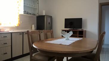 Ferienwohnung bietet Platz für 6 Gäste. Die Betten sind in Schlafzimmern, die es 2 gibt, und in Esszimmer, innerhalb einer Gesamtfläche von 49m2, angeordnet. Die Gäste haben eine eigene Terrasse zur Verfügung, auf der sie in warmen Sommernächten genießen können. Es ist erlaubt, Speisen auf dem Gemeinschafts-Grill vorzubereiten.