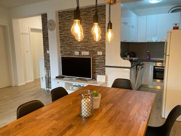 Ferienwohnung bietet Platz für 6 Gäste. Die Betten sind in Schlafzimmern, die es 2 gibt, und in Wohnzimmer, innerhalb einer Gesamtfläche von 55m2, angeordnet. Die Gäste haben eine eigene Terrasse zur Verfügung, auf der sie in warmen Sommernächten genießen können. Das Apartment bietet Meerblick. Für vollen Genuss und Entspannung gibt es einen privaten Grill für Gäste dieser Unterkunft. Während ihres Aufenthalts können sich Gäste im privaten Schwimmbad entspannen. In der Unterkunftseinheit besteht die Möglichkeit des Mitbringens von Haustieren gegen Aufpreis.