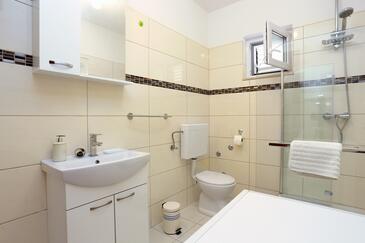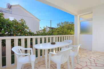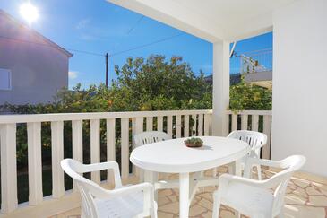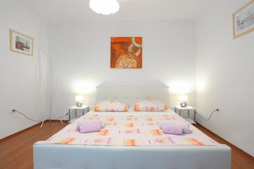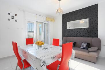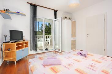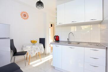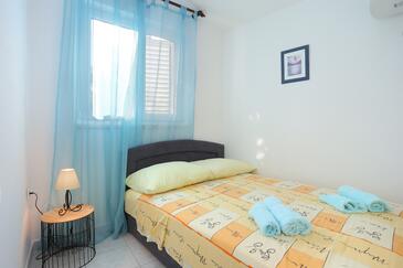 Ferienwohnung bietet Platz für 5 Gäste. Die Betten sind in Schlafzimmern, die es 2 gibt, innerhalb einer Gesamtfläche von 50m2, angeordnet. Die Gäste haben eine eigene Terrasse zur Verfügung, auf der sie in warmen Sommernächten genießen können. Das Apartment bietet Meerblick. Es ist erlaubt, Speisen auf dem Gemeinschafts-Grill vorzubereiten.