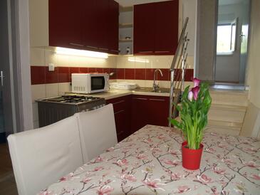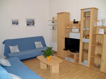 Ferienwohnung bietet Platz für 7 Gäste. Die Betten sind in Schlafzimmern, die es 3 gibt, und in Wohnzimmer, innerhalb einer Gesamtfläche von 64m2, angeordnet. Die Gäste haben eine eigene Terrasse zur Verfügung, auf der sie in warmen Sommernächten genießen können. Das Apartment bietet Meerblick. Es ist erlaubt, Speisen auf dem Gemeinschafts-Grill vorzubereiten.