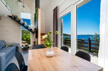 Haus bietet Platz für 6 Gäste. Die Betten sind in Schlafzimmern, die es 3 gibt, innerhalb einer Gesamtfläche von 53m2, angeordnet. Die Gäste haben eine eigene Terrasse zur Verfügung, auf der sie in warmen Sommernächten genießen können. Das Haus bietet Meerblick. Für vollen Genuss und Entspannung gibt es einen privaten Grill für Gäste dieser Unterkunft.
