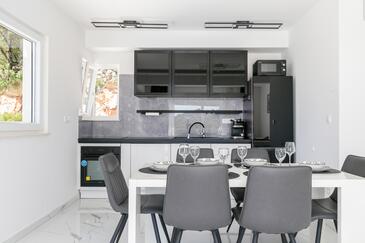 Haus bietet Platz für 6 Gäste. Die Betten sind in Schlafzimmern, die es 2 gibt, und in Wohnzimmer, innerhalb einer Gesamtfläche von 114m2, angeordnet. Die Gäste haben eine eigene Terrasse zur Verfügung, auf der sie in warmen Sommernächten genießen können. Das Haus bietet Meerblick. Für vollen Genuss und Entspannung gibt es einen privaten Grill für Gäste dieser Unterkunft. Während ihres Aufenthalts können sich Gäste im privaten Schwimmbad entspannen.