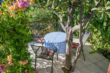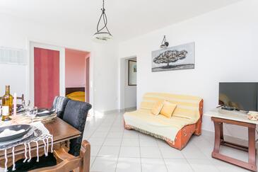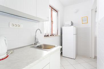 Ferienwohnung bietet Platz für 5 Gäste. Die Betten sind in Schlafzimmern, die es 2 gibt, und in Wohnzimmer, innerhalb einer Gesamtfläche von 48m2, angeordnet. Die Gäste haben eine eigene Terrasse zur Verfügung, auf der sie in warmen Sommernächten genießen können. Das Apartment bietet Meerblick. Es ist erlaubt, Speisen auf dem Gemeinschafts-Grill vorzubereiten. In der Unterkunftseinheit besteht die Möglichkeit des Mitbringens von Haustieren gegen Aufpreis.