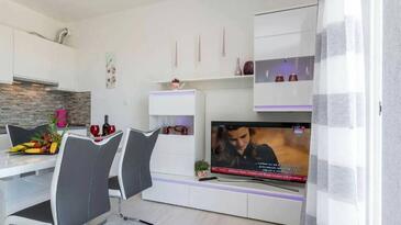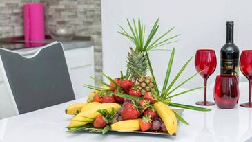 Ferienwohnung bietet Platz für 7 Gäste. Die Betten sind in Schlafzimmern, die es 2 gibt, und in Wohnzimmer, innerhalb einer Gesamtfläche von 60m2, angeordnet. Die Gäste haben einen eigenen Balkon zur Verfügung, auf der sie in warmen Sommernächten genießen können. Das Apartment bietet Meerblick. Es ist erlaubt, Speisen auf dem Gemeinschafts-Grill vorzubereiten. Während ihres Aufenthalts können Gäste das gemeinsam zur Nutzung stehende Schwimmbad benutzen.