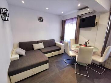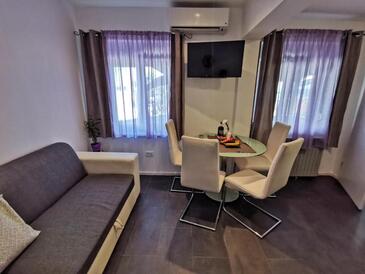 Ferienwohnung bietet Platz für 4 Gäste. Die Betten sind in Schlafzimmern, die es 1 gibt, und in Wohnzimmer, innerhalb einer Gesamtfläche von 35m2, angeordnet. Die Gäste haben eine eigene Terrasse zur Verfügung, auf der sie in warmen Sommernächten genießen können. Das Apartment bietet Meerblick. Es ist erlaubt, Speisen auf dem Gemeinschafts-Grill vorzubereiten.