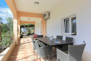 Ferienwohnung bietet Platz für 8 Gäste. Die Betten sind in Schlafzimmern, die es 3 gibt, innerhalb einer Gesamtfläche von 73m2, angeordnet. Die Gäste haben eine eigene Terrasse zur Verfügung, auf der sie in warmen Sommernächten genießen können. Das Apartment bietet Meerblick. Es ist erlaubt, Speisen auf dem Gemeinschafts-Grill vorzubereiten. In der Unterkunftseinheit besteht die Möglichkeit des Mitbringens von Haustieren, und die Dienstleistung ist im Preis der Unterkunft enthalten.