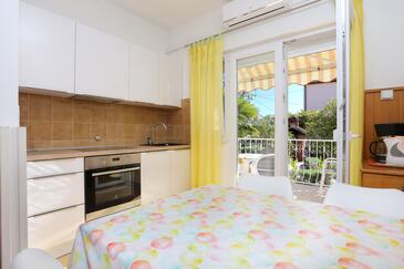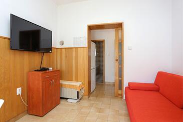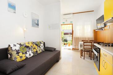 Ferienwohnung bietet Platz für 4 Gäste. Die Betten sind in Schlafzimmern, die es 1 gibt, und in Wohnzimmer, innerhalb einer Gesamtfläche von 34m2, angeordnet. Die Gäste haben eine eigene Terrasse zur Verfügung, auf der sie in warmen Sommernächten genießen können. Es ist erlaubt, Speisen auf dem Gemeinschafts-Grill vorzubereiten. In der Unterkunftseinheit besteht die Möglichkeit des Mitbringens von Haustieren gegen Aufpreis.