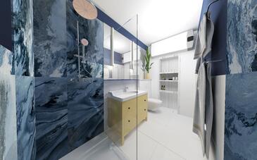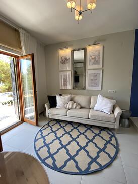 Ferienwohnung bietet Platz für 6 Gäste. Die Betten sind in Schlafzimmern, die es 3 gibt, innerhalb einer Gesamtfläche von 136m2, angeordnet. Die Gäste haben eine eigene Terrasse zur Verfügung, auf der sie in warmen Sommernächten genießen können. Das Apartment bietet Meerblick. Es ist erlaubt, Speisen auf dem Gemeinschafts-Grill vorzubereiten.