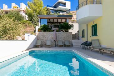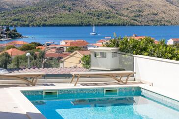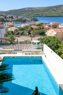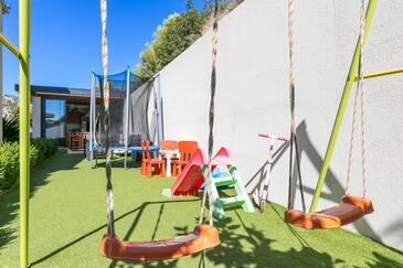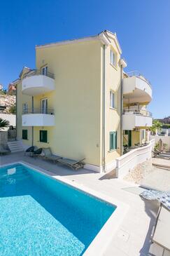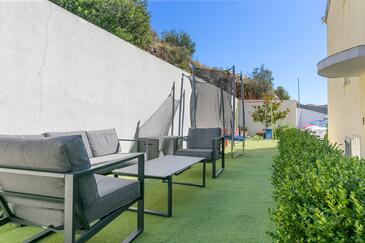 Ferienwohnung bietet Platz für 5 Gäste. Die Betten sind in Schlafzimmern, die es 2 gibt, und in Wohnzimmer, innerhalb einer Gesamtfläche von 55m2, angeordnet. Die Gäste haben eine eigene Terrasse zur Verfügung, auf der sie in warmen Sommernächten genießen können. Das Apartment bietet Meerblick. Es ist erlaubt, Speisen auf dem Gemeinschafts-Grill vorzubereiten. Während ihres Aufenthalts können Gäste das gemeinsam zur Nutzung stehende Schwimmbad benutzen.