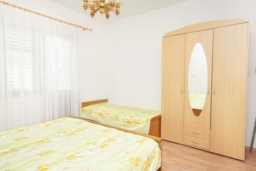 Ferienwohnung bietet Platz für 6 Gäste. Die Betten sind in Schlafzimmern, die es 2 gibt, innerhalb einer Gesamtfläche von 51m2, angeordnet. Die Gäste haben eine eigene Terrasse zur Verfügung, auf der sie in warmen Sommernächten genießen können. Das Apartment bietet Meerblick. Es ist erlaubt, Speisen auf dem Gemeinschafts-Grill vorzubereiten.