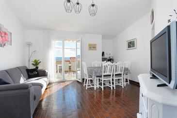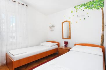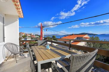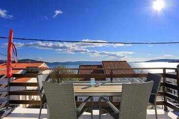 Ferienwohnung bietet Platz für 4 Gäste. Die Betten sind in Schlafzimmern, die es 2 gibt, innerhalb einer Gesamtfläche von 51m2, angeordnet. Die Gäste haben eine eigene Terrasse zur Verfügung, auf der sie in warmen Sommernächten genießen können. Das Apartment bietet Meerblick. Es ist erlaubt, Speisen auf dem Gemeinschafts-Grill vorzubereiten.