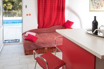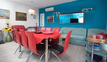 Haus bietet Platz für 12 Gäste. Die Betten sind in Schlafzimmern, die es 5 gibt, und in Esszimmer, innerhalb einer Gesamtfläche von 137m2, angeordnet. Die Gäste haben eine eigene Terrasse zur Verfügung, auf der sie in warmen Sommernächten genießen können. Das Haus bietet Meerblick. Es ist erlaubt, Speisen auf dem Gemeinschafts-Grill vorzubereiten. Während ihres Aufenthalts können sich Gäste im privaten Schwimmbad entspannen. In der Unterkunftseinheit besteht die Möglichkeit des Mitbringens von Haustieren, und die Dienstleistung ist im Preis der Unterkunft enthalten. Räume der gebuchten Unterkunftseinheit werden nicht in eine Ganze verbunden. In der gebuchten Unterkunftseinheit zahlt man am Ort ein Depositum ( der Preis ist an der Internetseite angeführt ).