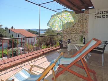 Ferienwohnung bietet Platz für 5 Gäste. Die Betten sind in Schlafzimmern, die es 2 gibt, und in Wohnzimmer, innerhalb einer Gesamtfläche von 57m2, angeordnet. Die Gäste haben eine eigene Terrasse zur Verfügung, auf der sie in warmen Sommernächten genießen können. Das Apartment bietet Meerblick. Es ist erlaubt, Speisen auf dem Gemeinschafts-Grill vorzubereiten.