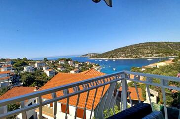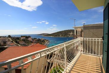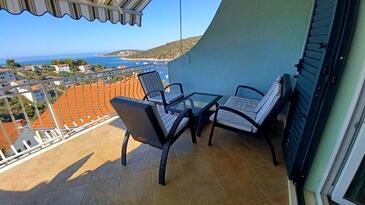 Ferienwohnung bietet Platz für 5 Gäste. Die Betten sind in Schlafzimmern, die es 3 gibt, innerhalb einer Gesamtfläche von 69m2, angeordnet. Die Gäste haben eine eigene Terrasse zur Verfügung, auf der sie in warmen Sommernächten genießen können. Das Apartment bietet Meerblick. Es ist erlaubt, Speisen auf dem Gemeinschafts-Grill vorzubereiten.