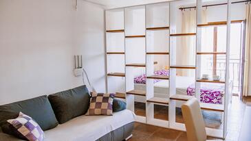 Ferienwohnung bietet Platz für 5 Gäste. Die Betten sind in Schlafzimmern, die es 1 gibt, und in Wohnzimmer, innerhalb einer Gesamtfläche von 46m2, angeordnet. Die Gäste haben einen eigenen Balkon zur Verfügung, auf der sie in warmen Sommernächten genießen können. Das Apartment bietet Meerblick. Es ist erlaubt, Speisen auf dem Gemeinschafts-Grill vorzubereiten. Die reservierte Unterkunftseinheit verfügt über einen gemeinsame Terrasse.