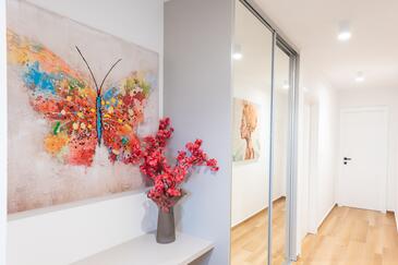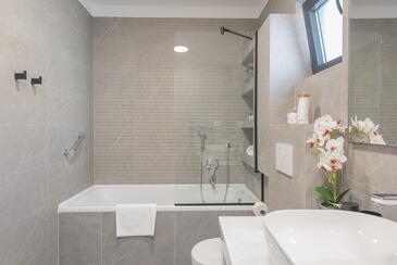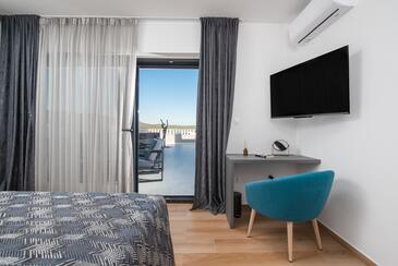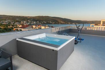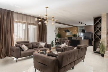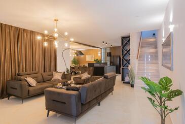 Haus bietet Platz für 7 Gäste. Die Betten sind in Schlafzimmern, die es 3 gibt, innerhalb einer Gesamtfläche von 190m2, angeordnet. Die Gäste haben eine eigene Terrasse zur Verfügung, auf der sie in warmen Sommernächten genießen können. Das Haus bietet Meerblick. Für vollen Genuss und Entspannung gibt es einen privaten Grill für Gäste dieser Unterkunft. Während ihres Aufenthalts können sich Gäste im privaten Schwimmbad entspannen. In der Unterkunftseinheit besteht die Möglichkeit des Mitbringens von Haustieren gegen Aufpreis.