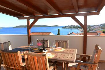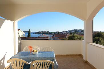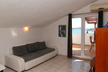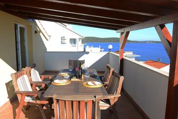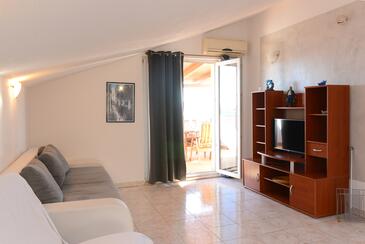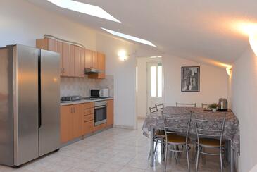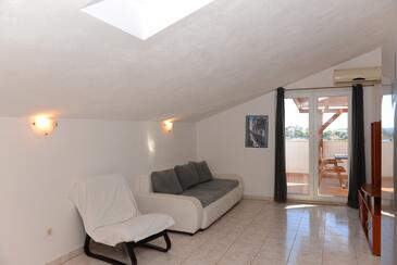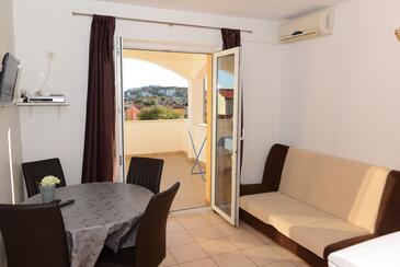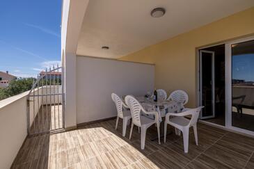 Ferienwohnung bietet Platz für 6 Gäste. Die Betten sind in Schlafzimmern, die es 2 gibt, und in Wohnzimmer, innerhalb einer Gesamtfläche von 51m2, angeordnet. Die Gäste haben eine eigene Terrasse zur Verfügung, auf der sie in warmen Sommernächten genießen können. Das Apartment bietet Meerblick. Es ist erlaubt, Speisen auf dem Gemeinschafts-Grill vorzubereiten. Während ihres Aufenthalts können Gäste das gemeinsam zur Nutzung stehende Schwimmbad benutzen.
