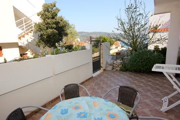 Ferienwohnung bietet Platz für 5 Gäste. Die Betten sind in Schlafzimmern, die es 2 gibt, und in Esszimmer, innerhalb einer Gesamtfläche von 43m2, angeordnet. Die Gäste haben eine eigene Terrasse zur Verfügung, auf der sie in warmen Sommernächten genießen können. Das Apartment bietet Meerblick. Es ist erlaubt, Speisen auf dem Gemeinschafts-Grill vorzubereiten.
