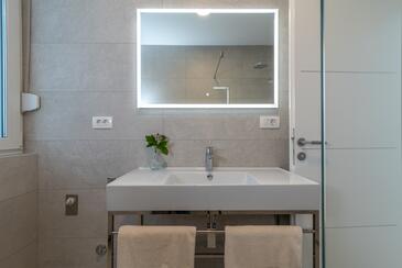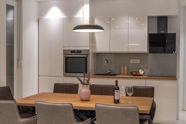 Haus bietet Platz für 8 Gäste. Die Betten sind in Schlafzimmern, die es 4 gibt, innerhalb einer Gesamtfläche von 125m2, angeordnet. Die Gäste haben eine eigene Terrasse zur Verfügung, auf der sie in warmen Sommernächten genießen können. Das Haus bietet Meerblick. Für vollen Genuss und Entspannung gibt es einen privaten Grill für Gäste dieser Unterkunft. Während ihres Aufenthalts können sich Gäste im privaten Schwimmbad entspannen. In der gebuchten Unterkunftseinheit zahlt man am Ort ein Depositum ( der Preis ist an der Internetseite angeführt ).