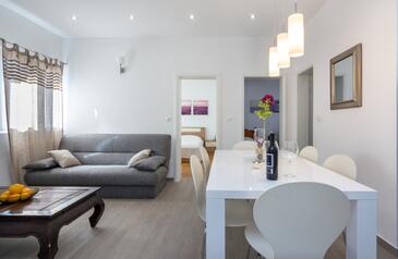 Haus bietet Platz für 7 Gäste. Die Betten sind in Schlafzimmern, die es 2 gibt, und in Wohnzimmer, innerhalb einer Gesamtfläche von 70m2, angeordnet. Die Gäste haben eine eigene Terrasse zur Verfügung, auf der sie in warmen Sommernächten genießen können. Das Haus bietet Meerblick. Für vollen Genuss und Entspannung gibt es einen privaten Grill für Gäste dieser Unterkunft.