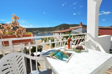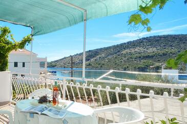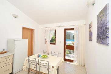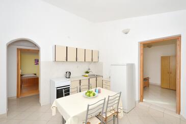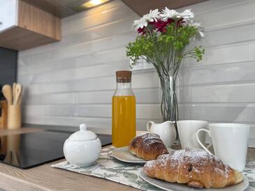 Ferienwohnung bietet Platz für 6 Gäste. Die Betten sind in Schlafzimmern, die es 2 gibt, und in Wohnzimmer, innerhalb einer Gesamtfläche von 76m2, angeordnet. Die Gäste haben eine eigene Terrasse zur Verfügung, auf der sie in warmen Sommernächten genießen können. Es ist erlaubt, Speisen auf dem Gemeinschafts-Grill vorzubereiten.