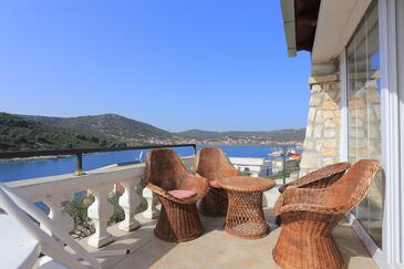 Ferienwohnung bietet Platz für 7 Gäste. Die Betten sind in Schlafzimmern, die es 3 gibt, innerhalb einer Gesamtfläche von 75m2, angeordnet. Die Gäste haben eine eigene Terrasse zur Verfügung, auf der sie in warmen Sommernächten genießen können. Das Apartment bietet Meerblick. Es ist erlaubt, Speisen auf dem Gemeinschafts-Grill vorzubereiten. In der Unterkunftseinheit besteht die Möglichkeit des Mitbringens von Haustieren gegen Aufpreis. In der gebuchten Unterkunftseinheit zahlt man am Ort ein Depositum ( der Preis ist an der Internetseite angeführt ).