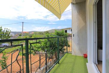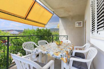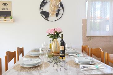 Ferienwohnung bietet Platz für 6 Gäste. Die Betten sind in Schlafzimmern, die es 2 gibt, innerhalb einer Gesamtfläche von 65m2, angeordnet. Die Gäste haben eine eigene Terrasse zur Verfügung, auf der sie in warmen Sommernächten genießen können. Das Apartment bietet Meerblick. Es ist erlaubt, Speisen auf dem Gemeinschafts-Grill vorzubereiten.