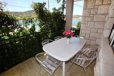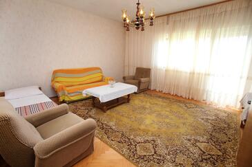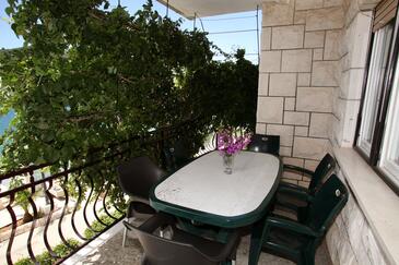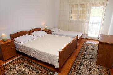 Ferienwohnung bietet Platz für 6 Gäste. Die Betten sind in Schlafzimmern, die es 3 gibt, und in Wohnzimmer, innerhalb einer Gesamtfläche von 84m2, angeordnet. Die Gäste haben eine eigene Terrasse zur Verfügung, auf der sie in warmen Sommernächten genießen können. Das Apartment bietet Meerblick. Es ist erlaubt, Speisen auf dem Gemeinschafts-Grill vorzubereiten.