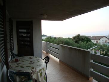 Ferienwohnung bietet Platz für 6 Gäste. Die Betten sind in Schlafzimmern, die es 3 gibt, innerhalb einer Gesamtfläche von 92m2, angeordnet. Die Gäste haben eine eigene Terrasse zur Verfügung, auf der sie in warmen Sommernächten genießen können. Das Apartment bietet Meerblick. Es ist erlaubt, Speisen auf dem Gemeinschafts-Grill vorzubereiten.