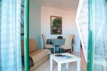 Ferienwohnung bietet Platz für 5 Gäste. Die Betten sind in Schlafzimmern, die es 2 gibt, und in Wohnzimmer, innerhalb einer Gesamtfläche von 47m2, angeordnet. Die Gäste haben eine eigene Terrasse zur Verfügung, auf der sie in warmen Sommernächten genießen können. Das Apartment bietet Meerblick. Während ihres Aufenthalts können Gäste das gemeinsam zur Nutzung stehende Schwimmbad benutzen. In der Unterkunftseinheit besteht die Möglichkeit des Mitbringens von Haustieren gegen Aufpreis.