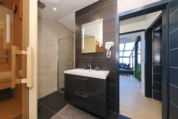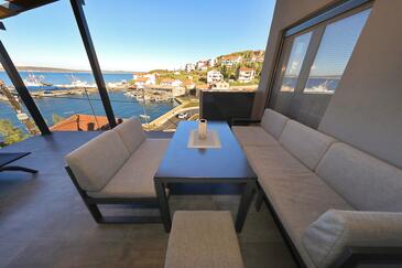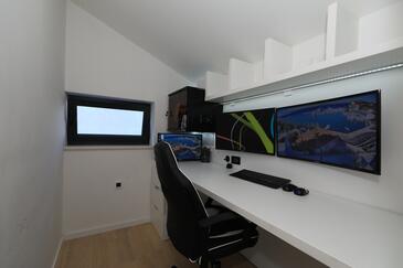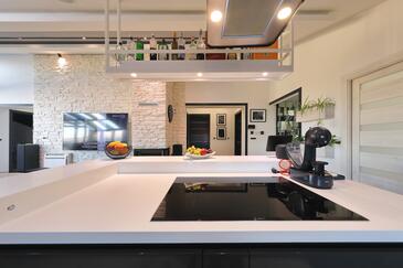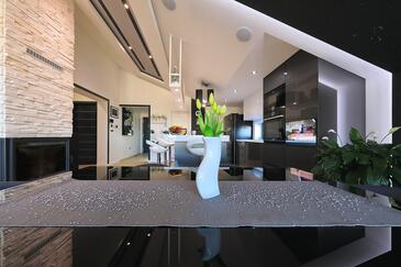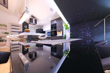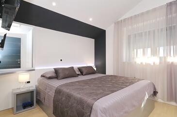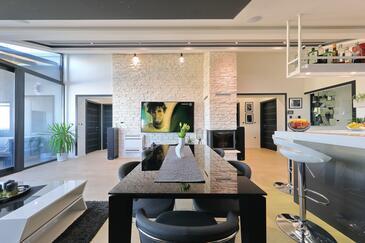 Ferienwohnung bietet Platz für 6 Gäste. Die Betten sind in Schlafzimmern, die es 3 gibt, innerhalb einer Gesamtfläche von 100m2, angeordnet. Die Gäste haben eine eigene Terrasse zur Verfügung, auf der sie in warmen Sommernächten genießen können. Das Apartment bietet Meerblick.