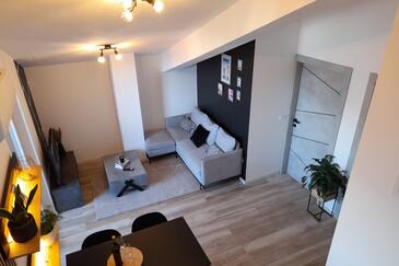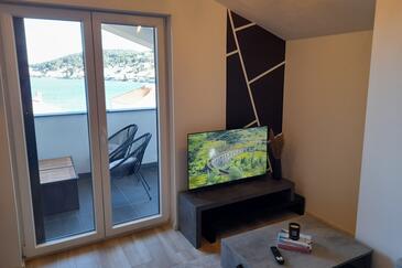 Ferienwohnung bietet Platz für 4 Gäste. Die Betten sind in Schlafzimmern, die es 1 gibt, und in Wohnzimmer, innerhalb einer Gesamtfläche von 34m2, angeordnet. Die Gäste haben einen eigenen Balkon zur Verfügung, auf der sie in warmen Sommernächten genießen können. Das Apartment bietet Meerblick. Es ist erlaubt, Speisen auf dem Gemeinschafts-Grill vorzubereiten.