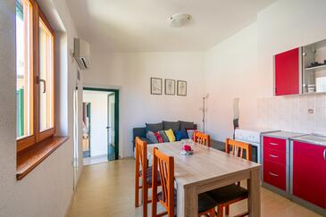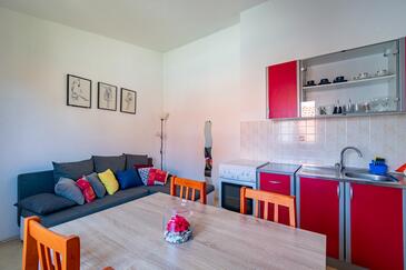 Ferienwohnung bietet Platz für 4 Gäste. Die Betten sind in Schlafzimmern, die es 2 gibt, innerhalb einer Gesamtfläche von 52m2, angeordnet. In der Unterkunftseinheit besteht die Möglichkeit des Mitbringens von Haustieren gegen Aufpreis. Die reservierte Unterkunftseinheit hat keinen Balkon und keine Terrasse.