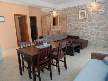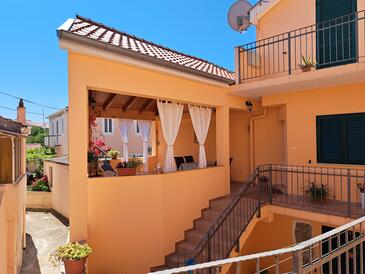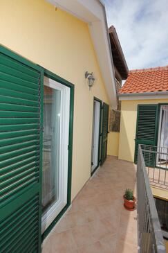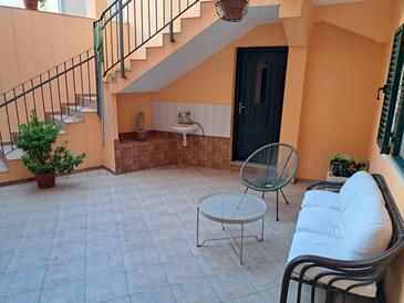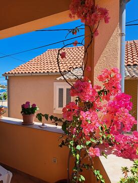 Ferienwohnung bietet Platz für 6 Gäste. Die Betten sind in Schlafzimmern, die es 2 gibt, und in Esszimmer, innerhalb einer Gesamtfläche von 57m2, angeordnet. Die Gäste haben eine eigene Terrasse zur Verfügung, auf der sie in warmen Sommernächten genießen können. Das Apartment bietet Meerblick. Es ist erlaubt, Speisen auf dem Gemeinschafts-Grill vorzubereiten.