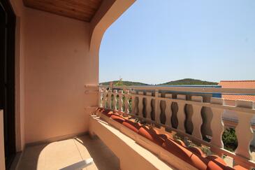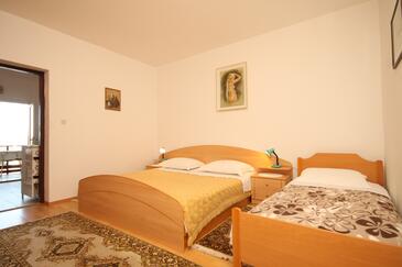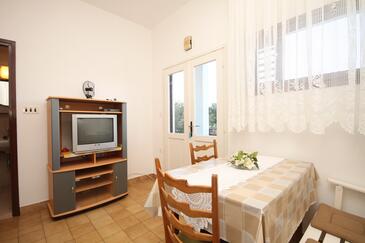 Ferienwohnung bietet Platz für 5 Gäste. Die Betten sind in Schlafzimmern, die es 2 gibt, und in Esszimmer, innerhalb einer Gesamtfläche von 72m2, angeordnet. Die Gäste haben eine eigene Terrasse zur Verfügung, auf der sie in warmen Sommernächten genießen können. Das Apartment bietet Meerblick. Es ist erlaubt, Speisen auf dem Gemeinschafts-Grill vorzubereiten.