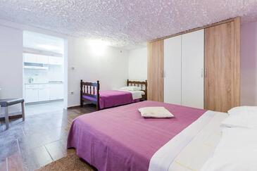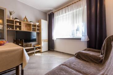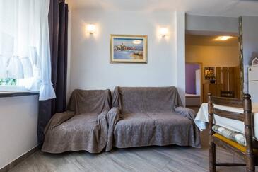 Ferienwohnung bietet Platz für 6 Gäste. Die Betten sind in Schlafzimmern, die es 2 gibt, und in Wohnzimmer, innerhalb einer Gesamtfläche von 68m2, angeordnet. Die Gäste haben eine eigene Terrasse zur Verfügung, auf der sie in warmen Sommernächten genießen können. Das Apartment bietet Meerblick. Es ist erlaubt, Speisen auf dem Gemeinschafts-Grill vorzubereiten.