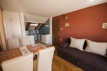 Ferienwohnung bietet Platz für 4 Gäste. Die Betten sind in Schlafzimmern, die es 1 gibt, und in Wohnzimmer, innerhalb einer Gesamtfläche von 37m2, angeordnet. Die Gäste haben eine eigene Terrasse zur Verfügung, auf der sie in warmen Sommernächten genießen können. Das Apartment bietet Meerblick. Es ist erlaubt, Speisen auf dem Gemeinschafts-Grill vorzubereiten. In der Unterkunftseinheit besteht die Möglichkeit des Mitbringens von Haustieren gegen Aufpreis.
