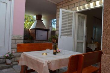 Ferienwohnung bietet Platz für 6 Gäste. Die Betten sind in Schlafzimmern, die es 2 gibt, und in Esszimmer, innerhalb einer Gesamtfläche von 57m2, angeordnet. Die Gäste haben eine eigene Terrasse zur Verfügung, auf der sie in warmen Sommernächten genießen können. Für vollen Genuss und Entspannung gibt es einen privaten Grill für Gäste dieser Unterkunft.