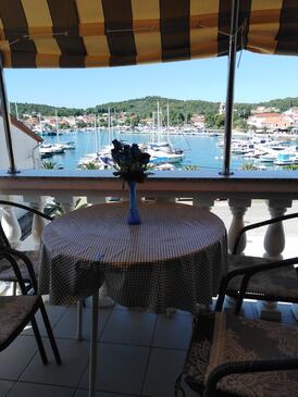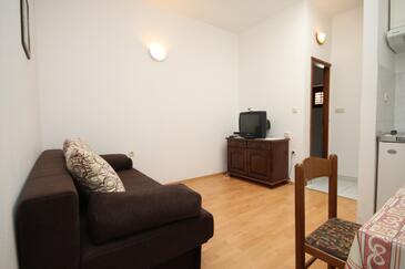 Ferienwohnung bietet Platz für 7 Gäste. Die Betten sind in Schlafzimmern, die es 3 gibt, innerhalb einer Gesamtfläche von 62m2, angeordnet. Die Gäste haben eine eigene Terrasse zur Verfügung, auf der sie in warmen Sommernächten genießen können. Das Apartment bietet Meerblick. Es ist erlaubt, Speisen auf dem Gemeinschafts-Grill vorzubereiten. In der Unterkunftseinheit besteht die Möglichkeit des Mitbringens von Haustieren, und die Dienstleistung ist im Preis der Unterkunft enthalten.