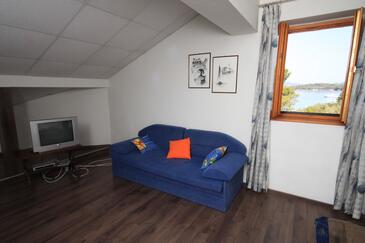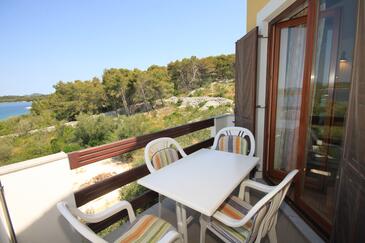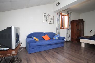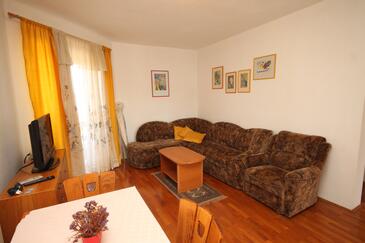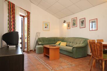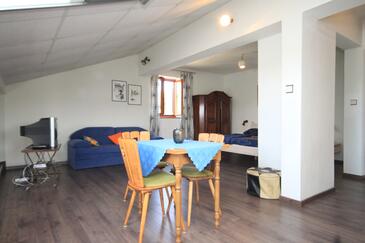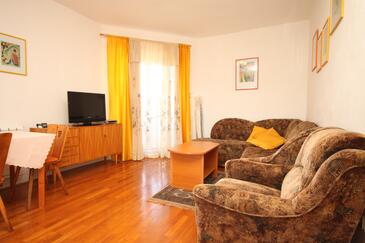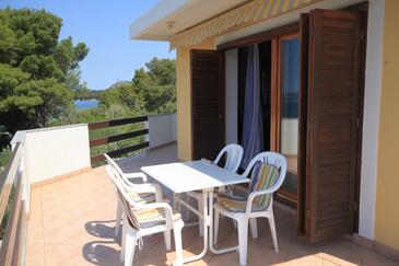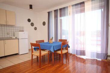 Ferienwohnung bietet Platz für 3 Gäste. Die Betten sind in Schlafzimmern, die es 1 gibt, und in Wohnzimmer, innerhalb einer Gesamtfläche von 46m2, angeordnet. Die Gäste haben eine eigene Terrasse zur Verfügung, auf der sie in warmen Sommernächten genießen können. Das Apartment bietet Meerblick. Es ist erlaubt, Speisen auf dem Gemeinschafts-Grill vorzubereiten.