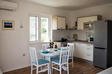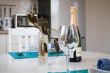 Ferienwohnung bietet Platz für 4 Gäste. Die Betten sind in Schlafzimmern, die es 1 gibt, und in Esszimmer, innerhalb einer Gesamtfläche von 37m2, angeordnet. Die Gäste haben eine eigene Terrasse zur Verfügung, auf der sie in warmen Sommernächten genießen können. Es ist erlaubt, Speisen auf dem Gemeinschafts-Grill vorzubereiten.
