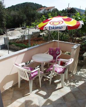 Ferienwohnung bietet Platz für 4 Gäste. Die Betten sind in Schlafzimmern, die es 2 gibt, innerhalb einer Gesamtfläche von 32m2, angeordnet. Die Gäste haben eine eigene Terrasse zur Verfügung, auf der sie in warmen Sommernächten genießen können. Das Apartment bietet Meerblick. Es ist erlaubt, Speisen auf dem Gemeinschafts-Grill vorzubereiten.