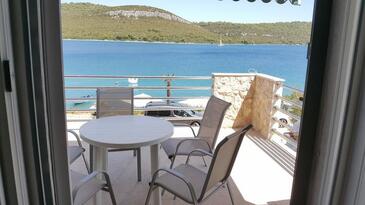 Ferienwohnung bietet Platz für 4 Gäste. Die Betten sind in Schlafzimmern, die es 1 gibt, und in Wohnzimmer, innerhalb einer Gesamtfläche von 48m2, angeordnet. Die Gäste haben eine eigene Terrasse zur Verfügung, auf der sie in warmen Sommernächten genießen können. Das Apartment bietet Meerblick. Es ist erlaubt, Speisen auf dem Gemeinschafts-Grill vorzubereiten. In der Unterkunftseinheit besteht die Möglichkeit des Mitbringens von Haustieren, und die Dienstleistung ist im Preis der Unterkunft enthalten.